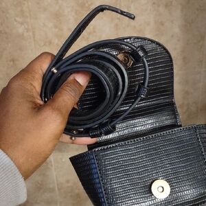 Elevate your style with the black textured handbag. Perfect for any occasion, this chic accessory adds a touch of elegance to your ensemble. 6"x3"x2.5"