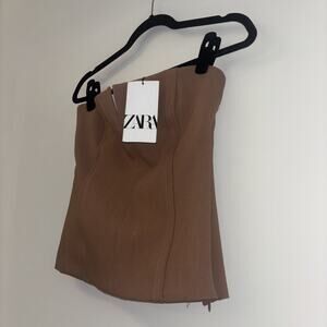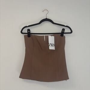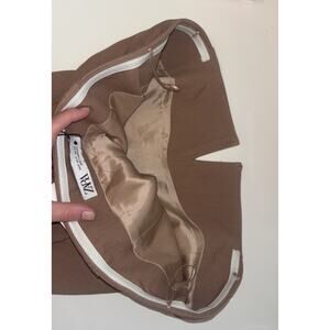 This Zara knit tank top is a versatile addition to any wardrobe. Its gingham pattern and sweetheart neckline give it a cute and feminine touch, while its sleeveless design and woven fabric make it perfect for any occasion, from travel to workwear. The top features a zip closure, ruffle details, and a fitted, bodycon style that accentuates the waistline.