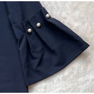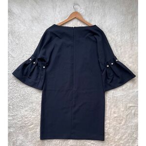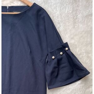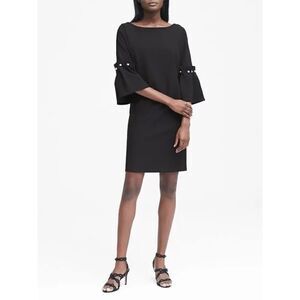 Banana Republic Navy Blue Bell-Sleeve Shift Dress with pearl Accents. An oh-so-now shift style with bell sleeves and faux pearl accents at the sleeves.