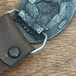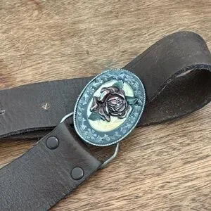 Add a touch of vintage charm to your outfit with this brown leather belt, featuring an intricate floral buckle design. Perfect for any occasion. Soft leather in great vintage condition.