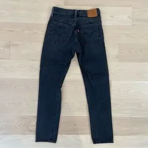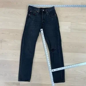 Levis 501 premium jeans black button fly ripped knees high rise waist size 25