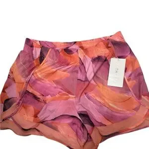 Athleta shorts. Pink and orange colors. Graphic print. Mesh lined inside. 4”. Pull on style. Polyester, nylon and spandex. New with tags. Size 1X.