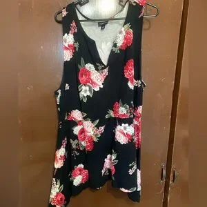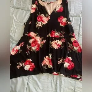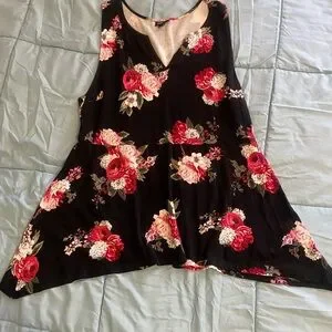 This relaxed, boxy tank top from Torrid features a sleeveless design and a multicolored floral pattern. The top offers a comfortable fit with its flowing silhouette, making it a versatile addition to any wardrobe.