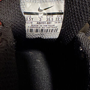 These are pre-owned Nike Vapor Fastfelx cleats, size US 3.5Y. The shoes are black with white accents, including the Nike swoosh and a honeycomb pattern. The soles show signs of wear. The uppers have scuff marks. The laces are black and in good condition. The shoes are functional but show cosmetic wear consistent with previous use.