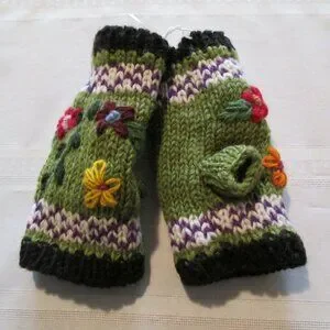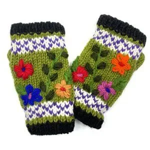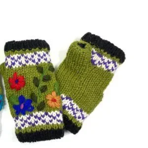 Handmade Embroidered Wool Fingerless Gloves – Made in Nepal