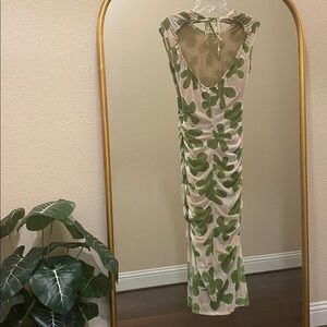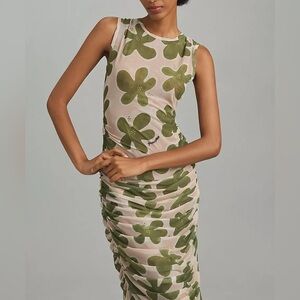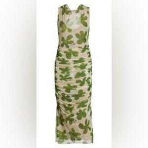 Simon Miller Tangier Printed Mesh Midi Dress in Green Seashell Flora Size XS