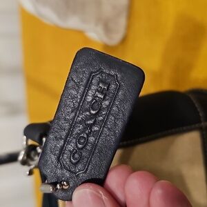 Coach Linen & Navy Leather Vintage Pochette A0C-6115 EUC