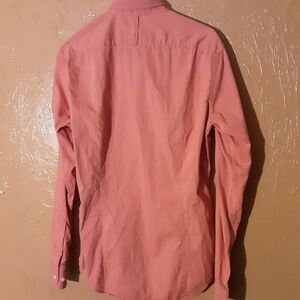 Stylish coral button-down shirt by Banana Republic. Ideal for casual outings. Comfortable and versatile.