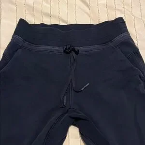 Comfortable black joggers with drawstring waist and cuffed ankles by Lululemon. Flat waist 16" across, flat inseam 26". Quality sweats / joggers in good pre-loved condition. Slight pilling at crotch area which could easily be shaved if you have a shaver. Consider bundling this item with 2 additional items for a bundle discount. I'd be glad to build you a special bundle listing of 3+ items on a Closet Clear Out day so you can receive the $4.99 discounted shipping offer from Poshmark. Thank you for viewing and reading. Happy Poshing!