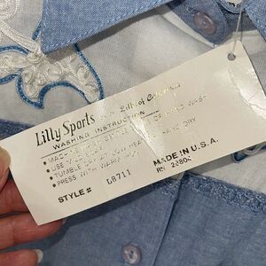 Super cute light blue/chambray button down shirt from Lilly of California. Size medium. 100% cotton. Probably 70's or 80's. Made in the USA! New with tags, no flaws to note.