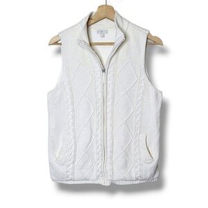 Talbots Petites Cable Knit Full Zip Vest Ivory Cream Jacket Winter Classic PL