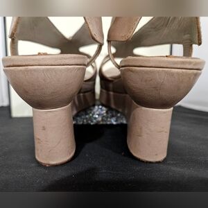 LEON MAX platform leather sandals 8.5 Bale taupe GUC tan statement shoes