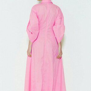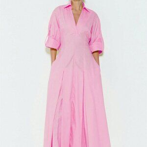 Pink Elegant Women's V-Neck Long Sleeve Flared Hem Chic Maxi Dress