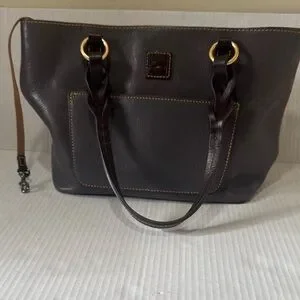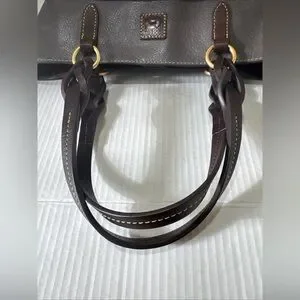 DOONEY BOURKE Florentine Leather Double Strap Shoulder Bag Gray W” Red Interior