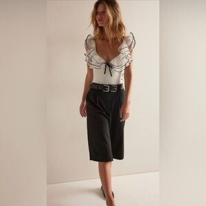 Flirty and fun, this gorgeous bodysuit from Intimately is adorned with layers of sheer ruffles running down the back sides of the bodysuit and joining at the bust with a tie closure for the sweetest finish.