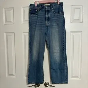 Light blue denim. Straight leg fit. Timeless Levi's style. So comfy and soft, in great condition, just too small for me.