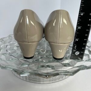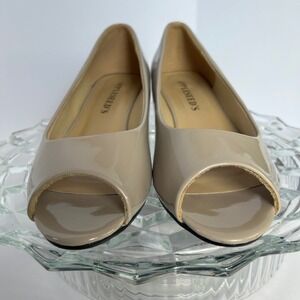 Appleseed's Taupe Patent Leather Peep Toe Wedge Heel Pumps Dress Shoes 9.5M