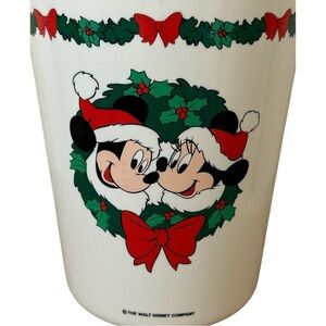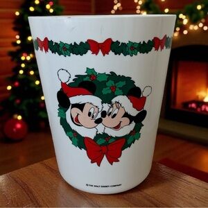 Vintage Walt Disney Mickey Minnie Wreath Garland Christmas Plastic Trash Can