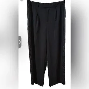 A New Day Black Dress Pants Tuxedo Stripe Business Office Chic Classy NWT