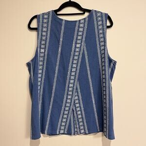 J. Jill Top Sleeveless Shirt Tank Blue White Eyelet Lace Embroidery Plus Size 2X