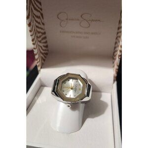 An octagon shape frames the gleaming Sunray dial of this ring watch set on a flexible band for the perfect fit
