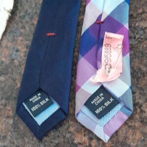 These 2 ties are basically new and probably unworn. One is just back from the cleaners and both are in perfect condition.