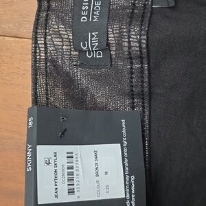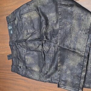 Elevate your style with metallic black jeans. Perfect for a night out, these jeans offer a sleek and modern look.