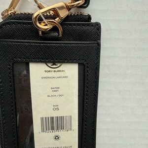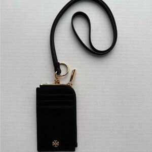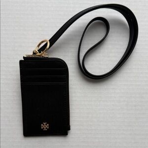 Tory Burch Emerson lanyard * black card holder with gold hardware. Features a clear ID window.