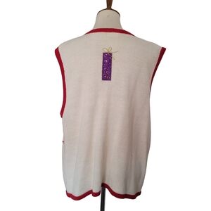 Bobbie Brooks Womens Christmas Sweater Vest Red Trim Bear Present Wreath