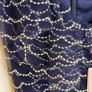 Alice McCall Navy Flutter-Sleeve Mesh Midi Dress – Feminine Party / Wedding Guest Ruched Waist