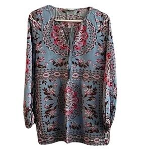 Entro Gray and Red Graphic 3/4 Sleeve Blouse