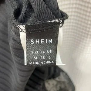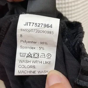 Like new, worn only a few times. Super cute sweetheart neckline top. The top portion is a mesh like material with polka dots and is a one shoulder piece. The material goes over the left shoulder and has a elastic piece on the underside that scrunches the material which is seen in the photos. The main portion has a velvet like material and makes a striped pattern. Some of the top is made of mesh which is slightly see-through which is seen in photos. There are two ribbon pieces to hang the top on a hanger. 95% polyester and 5% spandex. The sizing is as follows: M. US = 6. EU = 38.