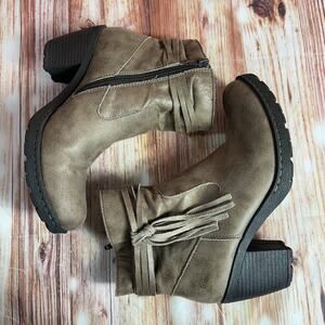 boc ALICUDI Womens Size 9 Brown Side Zip Up Block Heel Ankle Boots Booties Shoes