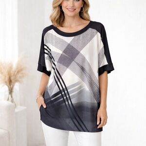 Easywear Chico’s Stacey Black White Geometric Tunic Dress Top Sz 2 Large