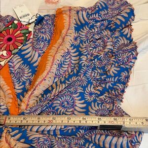 Farm Rio Flutter-Sleeve V-Neck Blue Flora Top Size Medium NWT