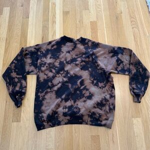 Reverse Tie Dye Sweatshirt Black & Brown Bleached Pullover grunge Street wear L