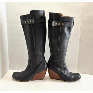 Kork-Ease Shawna Women's Black Leather Knee High Zipper Chunky Heel Boots Size US 7.5.