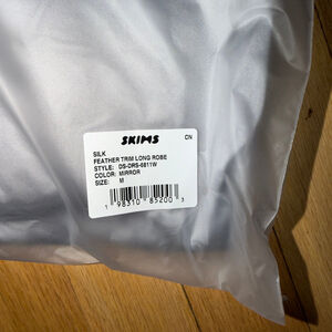 Skims Silk Feather Trim Long Robe in Mirror size M Sold Out Online SKU693