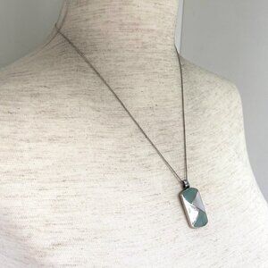 Sterling Silver 925 Dyed Mother Of Pearl MOP Geometric Inlay Pendant Necklace