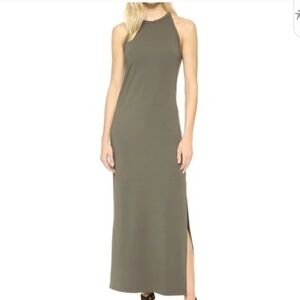 NWT This sleeveless maxi dress by Theory showcases a sophisticated halter neckline and a form-fitting sheath style, ideal for casual occasions. The rich brown hue enhances its timeless appeal, making it a versatile addition to any wardrobe. Its minimalist design ensures effortless elegance.
