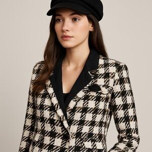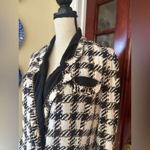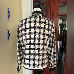 Vintage 80s 100% Silk Houndstooth Blazer Jacket, Size 10