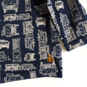 babyGap navy blue firetruck print cotton pocket long sleeve shirt, embroidered brannan bear, 18-24 months baby boy
