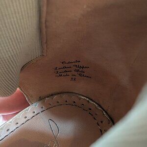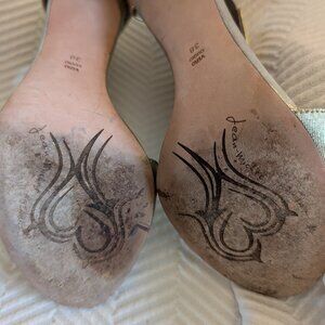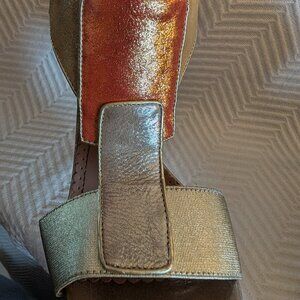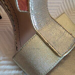 Condition: Gently worn, Small scuff on gold front band, Minor wear on soles (see photos)