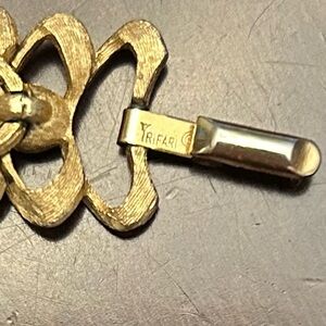 This Crown Trifari mark is dated from 1955-1965. This bracelet is in perfect condition with all original stones. An amazing piece considering it is between 60-70 years old. The photos can’t capture how beautiful this bracelet is.