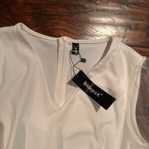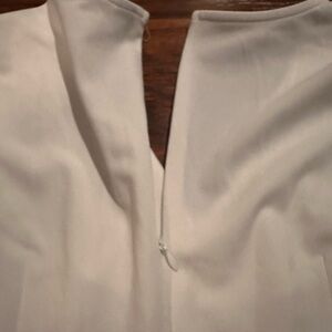 Step out in style with this elegant white jumpsuit featuring chic sheer sleeves. Perfect for any occasion, this piece offers a sophisticated look.wide legs. New without tags. Medium