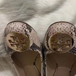 Tory Burch Snakeskin Flats with Gold Logo
