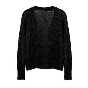 This cozy lightweight cardigan is playfully cropped with metallic fibers throughout. Layer over dresses or denim for laid-back ease.
