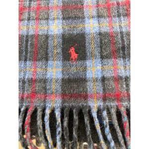 Keywords: Polo Ralph Lauren scarf, men's accessories, plaid scarf, wool blend, designer scarf, winter accessory, fashion scarf, Italian made, luxury scarf, classic style, warm scarf, fringe scarf