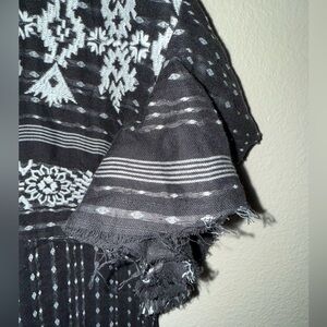 Sundance Black & White Gauze Material Embroidered V Neck Short Sleeve Top XL