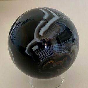 Stunning Black Sardonyx Crystal Sphere w Druzy